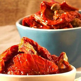 Unter süditalienischen Sonnenstrahlen saftig gereift, werden die knallroten Tomaten schonend getrocknet und in feinem Oliven- und Sonnenblumenöl eingelegt. Die aromatische Würze von Kapern, Knoblauch und Basilikum veredelt diese Antipasto-Kreation zu einem delikaten Leckerbissen.