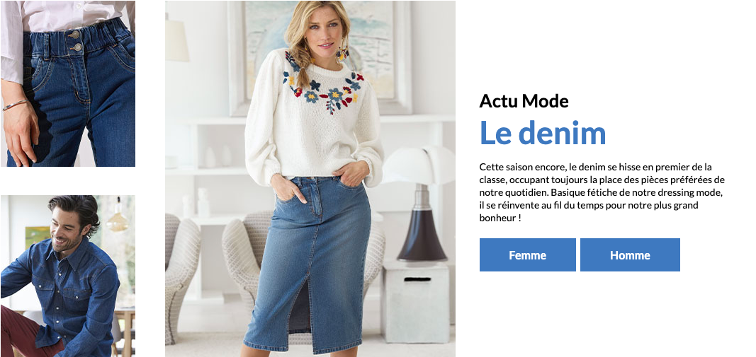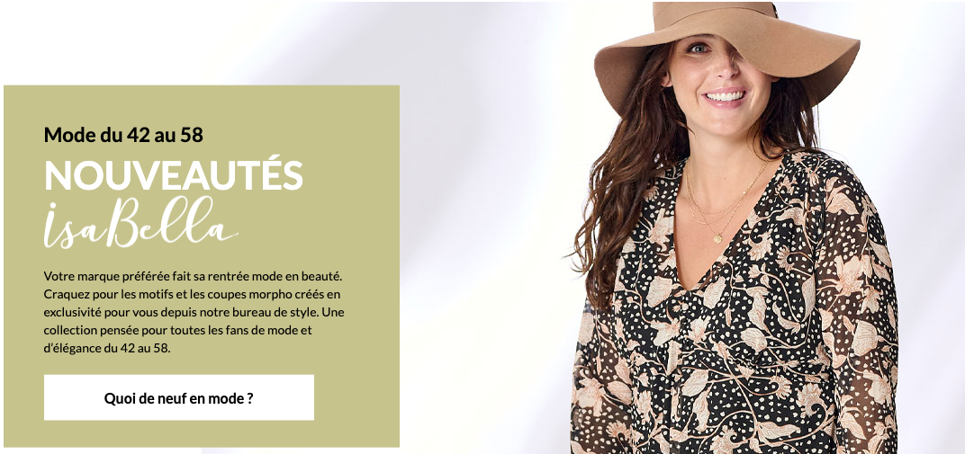 Nous prônons la mode pas chère, colorée à souhait, pour toutes les femmes du 38 au 58 dans des coupes morpho qui subliment la silhouette. Basiques de votre dressing, tenues faciles à porter, looks habillés ou homewear, vous trouverez toutes les pièces indispensables à votre garde-robe féminine. Nos collections vêtements, chaussures et accessoires sont dessinées et créées par nos propres équipes de collectionneuses et de stylistes. Un savoir-faire de créateur au service de la féminité.