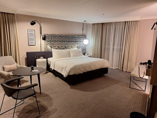 Room and suite categories are displayed with detailed descriptions outlining square footage, design elements, amenities, and views. Features include floor-to-ceiling windows, marble bathrooms with rain showers and soaking tubs, luxury bedding, in-room smart technology, and curated minibar selections. The site conveys a strong sense of exclusivity and comfort while maintaining clarity in practical information needed for booking decisions. Club floors and suites include lounge access, personalised services, and panoramic views, catering to business executives and discerning leisure guests alike.